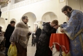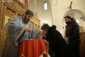 MESHA E UJIT TE BEKUAR - Kryepeshkopi i i Kishes Ortodokse Shqiptare, Joan Pelushi dhe nje besimtar gjate gjate meshes se dites se Ujit te Bekuar. Permbytjet e diteve te fundit nuk e kane bere te mundur ceremonine e hedhjes se kryqit.