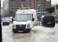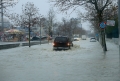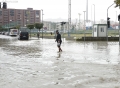 PERMBYTJE NE DURRES - Nje grua kalon nje rruge te permbytur ne Durres. Rreshjet e dendura kane shkaktuar permbytje te rrugeve, probleme me trafikun, ndersa uji ka hyre ne apartamente dhe dyqane.