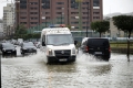 Nje burre kalon nje rruge te permbytur ne Durres. Rreshjet e dendura kane shkaktuar permbytje te rrugeve, probleme me trafikun, ndersa uji ka hyre ne apartamente dhe dyqane.