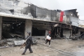 PASOJAT E ZJARRIT NE TREGUN E 5 MAJIT - Nje grua ecen me nje thes dhe qese ne duar ne afersi te tashme ish tregut te tregun e Ish Uzines Dinamo (5 Maj). laket kane perfshire 100 subjekte, ndersa nuk jane raportuar lendime ne njerez. Policia ka raportuar se zanafilla ka qene nje shkendije elektrike