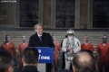PROTESTE PARA KRYEMINISTRISE - Kryetari i partise demokratike, Sali Berisha duke folur gjate nje proteste para kryeministrise. Gjate protestes, pjesemarresit kane kerkuar doreheqjen e kryeministrit Edi Rama dhe zv/kryeministres, Belinda Balluku. Para kryeministrise jane vendosur kartona me imazhet e Kryeministrit Edi Rama, i veshur me roba te ngjashme me te Nicolas Maduro ne momentin e kapjes nga SHBA, zv/kryeministres dhe ministres se infrastruktures dhe energjise, Belinda Balluku, Kryetarit te bashkise Erion Veliaj dhe deputeteve te arrestuar te partise socialiste.