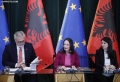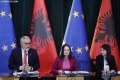 Ministrja e shtetit dhe Kryenegocitarja e Shqiperise per hyrjen ne BE, Majlinda Dhuka, Ministri i shtetit per marredheniet me parlamentin, Toni Gogu dhe Ministrja e Shtetit per antikorrupsionin, Adea Pirdeni gjate nje konference per shtyp, ku eshte prezantuar paketa ligjore ne kuader te negociatave per hyrjen ne BE.