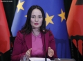 Ministrja e shtetit dhe Kryenegocitarja e Shqiperise per hyrjen ne BE, Majlinda Dhuka duke folur gjate nje konference per shtyp, ku eshte prezantuar paketa ligjore ne kuader te negociatave per hyrjen ne BE.