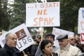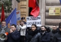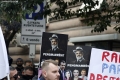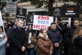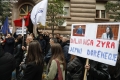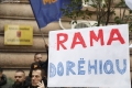 Protestues me pankarta gjate nje proteste te partise Mundesia para kuvendit te parlamentit. Gjate saj ata kane kerkuar gjykimin e zv/kryeministres Belinda Balluku.