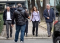 DEPUTETE JASHTE PARLAMENTI - Deputetet Bledjon Nallbati dhe Jorida Tabaku duke hyre ne ambientet e parlamentit, para nje seance parlamentare.