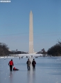 POTOMAC RIVER FOZEN - People take pictures and play at the frozen Reflecting Pool with the Washington Monument in the background as snow blankets Washington, D.C., USA, on January 27, 2026. A monster storm barreling across the United States had killed at least 11 people on Monday, prompting warnings to stay off the roads, mass flight cancellations, and power outages after a weekend of misery. The storm dumped snow, sleet, and freezing rain across swathes of the country from Texas to New England, with temperatures set to fall dangerously low this week.