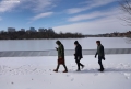 People walk next to the frozen Potomac River as snow blankets Washington, DC, USA, on January 27, 2026. A monster storm barreling across the United States had killed at least 11 people on Monday, prompting warnings to stay off the roads, mass flight cancellations, and power outages after a weekend of misery. The storm dumped snow, sleet, and freezing rain across swathes of the country from Texas to New England, with temperatures set to fall dangerously low this week.