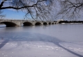 A view of the frozen Potomac River with the Memorial Bridge and the Lincoln Memorial in the background as snow blankets Washington, DC, USA, on January 27, 2026. A monster storm barreling across the United States had killed at least 11 people on Monday, prompting warnings to stay off the roads, mass flight cancellations, and power outages after a weekend of misery. The storm dumped snow, sleet, and freezing rain across swathes of the country from Texas to New England, with temperatures set to fall dangerously low this week.