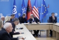 BERISHA FLET NE KONFERENCE - Kryetari i partise demokratike, Sali Berisha dhe deputetet Tomorr Alizoti dhe Flamur Noka duke folur gjate nje konference per shtyp. Gjate saj, ata diskutuan mbi aksionin opozitar.