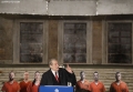 Kryetari i partise demokratike, Sali Berisha duke folur gjate nje proteste para kryeministrise. Gjate protestes, pjesemarresit kane kerkuar doreheqjen e kryeministrit Edi Rama dhe zv/kryeministres, Belinda Balluku. Para kryeministrise jane vendosur kartona me imazhet e Kryeministrit Edi Rama, i veshur me roba te ngjashme me te Nicolas Maduro ne momentin e kapjes nga SHBA, zv/kryeministres dhe ministres se infrastruktures dhe energjise, Belinda Balluku, Kryetarit te bashkise Erion Veliaj dhe deputeteve te arrestuar te partise socialiste.