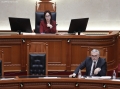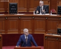 Ministri i shtetit per marredheniet me parlamentin, Toni Gogu duke folur gjate nje seance parlamentare. Gjate seances, u miratuan tete projektligje dhe nje projektvendim