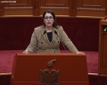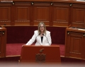 Deputeteja Ledina Aliolli duke folur gjate nje seance parlamentare. Gjate seances, u miratuan tete projektligje dhe nje projektvendim