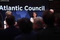 Ministrja per Evropen dhe Punet e Jashtme e Shqiperise, Elisa Spiropali duke folur gjate nje paneli diskutimi ne Keshillin e Atlantikut mbi Perspektivat Gjeopolitike te Zgjerimit te BE ne Ballkanin Perendimor, ne Washington, DC, SHBA, ne 5 shkurt 2026.