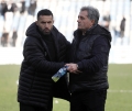 Trajneri i Tiranes, Ardijan Nuhiji dhe Trajneri i Dinamos, Ilir Daja gjate ndeshjes e futbollit Tirana - Dinamo City, 1-1, e vlefshme per Kategorine Superiore, e luajtur ne stadiumin Selman Stermasi ne Tirane.