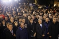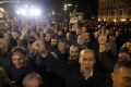 Kryetari i partise demokratike, Sali Berisha gjate nje proteste para kryeministrise. Gjate protestes, pjesemarresit kane kerkuar doreheqjen e kryeministrit Edi Rama dhe zv/kryeministres, Belinda Balluku.