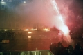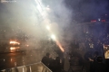 PROTESTE E PD - Protestues duke hedhur fishekzjarre drejt kyeministrise dhe forcave policore gjate nje proteste para kryeministrise. Gjate protestes, pjesemarresit kane kerkuar doreheqjen e kryeministrit Edi Rama dhe zv/kryeministres, Belinda Balluku.