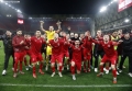 FUTBOLL TIRANA PARTIZANI - Lojtaret e Partizanit festojne fitoren pas ndeshjes se futbollit derbi Partizani - Tirana, 2-0, e vlefshme per Kategorine Superiore, e luajtur ne stadiumin Air Albania ne Tirane.