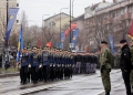 Ushtare te Forcave te Armatosura Kosovare duke parakaluar ne Sheshin Skenderbej ne Prishtine gjate nje ceremonie te organizuar me rastin e 18 vjetorit te pavaresise se Kosoves. Gjate saj, Kurti dhe politikanet e tjere nderuan deshmoret e luftes, veteranet e UÇK-se dhe theksoi se Kosova do te vazhdoje te forcoje sigurine