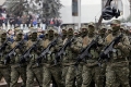 PARADA USHTARAKE PER PAVARESINE E KOSOVES - Ushtare te Forcave te Armatosura Kosovare duke parakaluar ne Sheshin Skenderbej ne Prishtine gjate nje ceremonie te organizuar me rastin e 18 vjetorit te pavaresise se Kosoves. Gjate saj, Kurti dhe politikanet e tjere nderuan deshmoret e luftes, veteranet e UÇK-se dhe theksoi se Kosova do te vazhdoje te forcoje sigurine