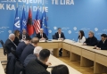 Kryetari i PD, Sali Berisha dhe deputeti Gazment Bardhi duke folur gjate nje konference per shtyp nga selia e PD. Gjate saj, ata kane folur mbi aksionin opozitar dhe protestat e ardhshme