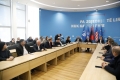 KONFERENCE E PD - Kryetari i PD, Sali Berisha dhe deputetet Flamur Noka e Gazment Bardhi duke folur gjate nje konference per shtyp nga selia e PD. Gjate saj, ata kane folur mbi aksionin opozitar dhe protestat e ardhshme