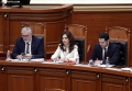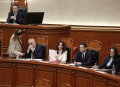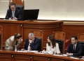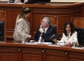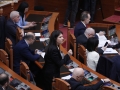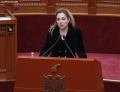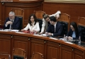 SEANCE PARLAMENTARE - Deputetja Zegjine Caushi duke folur ne nje moment tensioni gjate nje seance parlamentare. Gjate seances, ka pasur debate dhe tension midis perfaqesuesve te mazhorances dhe opozites.