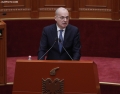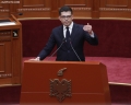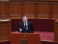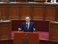 Kryetari i PD, Sali Berisha duke folur ne nje moment tensioni gjate nje seance parlamentare. Gjate seances, ka pasur debate dhe tension midis perfaqesuesve te mazhorances dhe opozites.