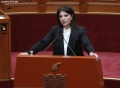 Deputetja Zegjine Caushi duke folur ne nje moment tensioni gjate nje seance parlamentare. Gjate seances, ka pasur debate dhe tension midis perfaqesuesve te mazhorances dhe opozites.