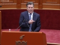 Deputeti Gazment Bardhi duke folur ne nje moment tensioni gjate nje seance parlamentare. Gjate seances, ka pasur debate dhe tension midis perfaqesuesve te mazhorances dhe opozites.