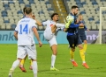 FUTBOLL FC DRITA KUNDER NK CELJE - Zan-Luk Leban i NK Celje gjate nje dyluftimi me Besnik Krasniqi te FC Drita gjate ndeshjes se pare te futbollit per fazen eliminatore te UEFA Conference League 2025/26, midis FC Drites dhe NK Celje ne stadiumin Fadil Vokrri me 19 shkurt 2026, ne Prishtine, Kosove.