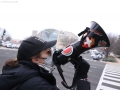 Autokolona presidenciale kalon ndersa protestuesit brohorasin slogane para oficereve te policise jashte jashte Institutit te Amerikan te Paqes, ku Presidenti Donald Trump mbajti takimin inaugurues te Bordit te Paqes ne Washington, DC, SHBA, me 19 shkurt 2026. Presidenti Trump ka mbledhur aleatet per te inauguruar Bordin e Paqes, institucionin e tij te ri per rindertimin ne Gaza. Me shume se njezete udheheqes boterore dhe zyrtare te larte kane ardhur ne Washington per kete takim, përfshire disa nga miqte e Trump me prirje autoritare dhe praktikisht asnje nga vendet demokratike evropiane qe tradicionalisht nenshkruajne nismat e SHBA.