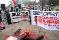 PROTESTE KUNDER BORDIT TE PAQES NE WASHINGTON - Aktiviste gjate nje proteste jashte Institutit Amerikan te Paqes, ndersa Presidenti Donald Trump po mban takimin inaugurues te Bordit te Paqes ne Washington, DC, SHBA, me 19 shkurt 2026. Presidenti Trump ka mbledhur aleatet per te inauguruar Bordin e Paqes, institucionin e tij te ri per rindertimin ne Gaza. Me shume se njezete udheheqës boterore dhe zyrtare te larte kane ardhur ne Washington per kete takim, përfshire disa nga miqte e Trump me prirje autoritare dhe praktikisht asnje nga vendet demokratike evropiane qe tradicionalisht nenshkruajne nismat e SHBA.