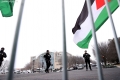 Oficere te policise krijojne nje perimeter sigurie ndersa aktiviste valevisin flamuj palestineze gjate nje proteste jashte Institutit te, ndersa Presidenti Donald Trump po mban takimin inaugurues te Bordit te Paqes ne Washington, DC, SHBA, me 19 shkurt 2026. Presidenti Trump ka mbledhur aleatet per te inauguruar Bordin e Paqes, institucionin e tij te ri per rindertimin ne Gaza. Me shume se njezete udheheqes boterore dhe zyrtare te larte kane ardhur ne Washington per kete takim, përfshire disa nga miqte e Trump me prirje autoritare dhe praktikisht asnje nga vendet demokratike evropiane qe tradicionalisht nenshkruajne nismat e SHBA.