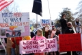 Demonstrues me pankarta kunder luftes ne Iran, gjate nje proteste prane Shtepise se Bardhe ne Washington, DC, SHBA, me 28 shkurt 2026. Shtetet e Bashkuara dhe Izraeli nisen ate qe ky i fundit e quajti nje fushate vendimtare dhe te pashembullt kunder Iranit, i cila u kundepergjij me nje bresheri raketash ne disa prej qyteteve kryesore anembane Lindjes se Mesme.