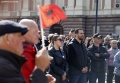 Adriatik Lapaj duke folur para kryeministrise gjate nje proteste te organizuar nga levizja Shqiperia Behet. Protestuesit kane kerkuar doreheqjen e Kryeministrit Edi Rama.