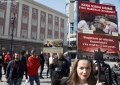 PROTESTE E SHQIPERIA BEHET - Adriatik Lapaj duke folur para kryeministrise gjate nje proteste te organizuar nga levizja Shqiperia Behet. Protestuesit kane kerkuar doreheqjen e Kryeministrit Edi Rama.
