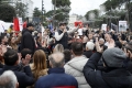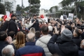 Kryetari i partise Shqiperia Behet, Adriatik Lapaj, protestues dhe forca policore ne nje moment perplasjeje gjate nje proteste para kryeministrise ne Tirane. Gjate saj, protestuesit kane kerkuar doreheqjen e kryeministrit Edi Rama.