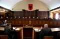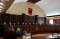 Members of the Supreme Court, Darjel Sina, Arbena Ahmeti, Asim Vokshi, Sander Simoni, Ervin Pupe, Artur Kalaja, Sokol Sadushi Ilir Panda, Sokol Binaj, Albana Boksi, Medi Bici, Gentjan Medja during a session of the United Colleges of the Supreme Court of the Republic of Albania. During the session, the judges examined criminal, civil and administrative cases.