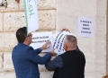 Lecturers putting up placards on the walls of the Polytechnic University of Tirana where lecturers and students have protested for the salaries of the lecturers, while they have requested an increase of 50% within two years, 30% this year and 20% next year. The lecturers have warned that if their requests are not heard, then there will be a boycott of the classrooms on October 17, the date of the new university academic year.The Prime Minister Edi Rama and the Minister of Education and Sports, Evis Kushi, responded to the protests and announced that the salary increase for lecturers will be 15%.