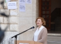 Lecturer at the Faculty of Justice, Enekelejda Olldashi speaking before the Polytechnic University of Tirana where lecturers and students have protested for the salaries of the lecturers, while they have requested an increase of 50% within two years, 30% this year and 20% next year. The lecturers have warned that if their requests are not heard, then there will be a boycott of the classrooms on October 17, the date of the new university academic year.The Prime Minister Edi Rama and the Minister of Education and Sports, Evis Kushi, responded to the protests and announced that the salary increase for lecturers will be 15%.