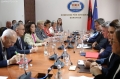 The Ambassador of Germany in Tirana, Peter Zingraf, the Ambassador of Italy in Tirana, Fabrizio Bucci, the US Ambassador in Tirana, Yuri Kim, the Head of the EU delegation in Tirana, the ambassador, Christiane Hohmann, the Swedish Ambassador in Tirana, the Swedish Ambassador in Tirana, Elsa Hastad and the French Ambassador in Tirana, the French Ambassador in Tirana, Elisabeth Barsacq during a meeting between the ambassadors and the representatives of the opposition at the headquarters of the Parliament. During the meeting, they talked about the administrative-territorial reforms, the electoral reform as well as the opposition action in general.