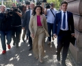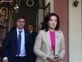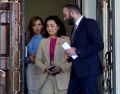AMBASSADORS LEAVING THE HEADQUARTERS OF THE PARLIAMENT - MPs Jorida Tabaku, Gazment Bardhi and the US Ambassador to Tirana, Yuri Kim exiting the headquarters of the parliament after a meeting of the main ambassadors to Albania with the representatives of the opposition. During the meeting, they talked about the administrative-territorial reforms, the electoral reforms as well as the opposition action in general.