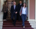 Ambassador of Italy to Tirana, Fabrizio Bucci and The Chairman of the OSCE Presence in Albania, Ambassador Vincenzo Del Monaco exiting the headquarters of the parliament after a meeting of the main ambassadors to Albania with the representatives of the opposition. During the meeting, they talked about the administrative-territorial reforms, the electoral reforms as well as the opposition action in general.