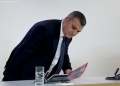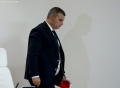 Governor of the Bank of Albania, Gent Sejko exiting a press conference where he spoke about the state of the economy in Albania, mentioning that inflation has reached 7.5%. Sejko announced that the Supervisory Council of the Bank of Albania decided to increase the basic interest rate by 0.5 percent.