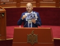 MP Bujar Leskaj speaking during a parliamentary session, during which the Speaker of the House Of Commons of Parliament in Canada, Anthony Rota, gave a speech, as well as two interpellations and a question session were held.