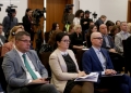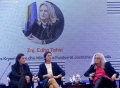 Deputy Speaker of the Parliament, Ermonela Valikaj, Ambassador of Switzerland in Tirana, Ruth Huber and Former Deputy Prime Minister of Kosovo, Edita Tahiri speaking during a national conference on the engagement of citizens in parliamentary processes, organized by the Institute for Democracy and Mediation in the premises of Hotel Rogner. The aim of the conference was to provide an opportunity for discussion on the topics of how the citizens' expectations of the parliament are changing and how the MPs and the support staff of the Parliament are reacting to the request for more engagement with the citizens.