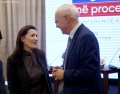 AHC Executive Director, Erida Skendaj and the President of the American Chamber of Commerce, Enio Jaco during a national conference on the engagement of citizens in parliamentary processes, organized by the Institute for Democracy and Mediation in the premises of Hotel Rogner. The aim of the conference was to provide an opportunity for discussion on the topics of how the citizens' expectations of the parliament are changing and how the MPs and the support staff of the Parliament are reacting to the request for more engagement with the citizens.