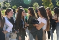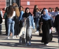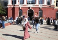 Students wearing hijab in the yard of the History and Philology Faculty during the first day of the academic year. Although the lecturers received the students in the early hours of the day, from 10 am to 12 pm they boycotted the lesson in protest against the low salaries, which they had warned about.