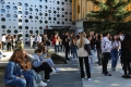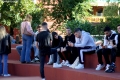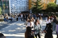 Students in the yard of the History and Philology Faculty during the first day of the academic year. Although the lecturers received the students in the early hours of the day, from 10 am to 12 pm they boycotted the lesson in protest against the low salaries, which they had warned about.