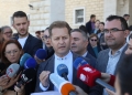 Lecturer of the Faculty of Arts, Ardian Isufi speaking during a protest in front of the Polytechnic Faculty of Tirana, after lecturers boycotted the lesson even in the third day of the beginning of the new academic year. The lecturers continued the protest in front of the faculties from 10 am to 12 pm, demanding a 50% salary increase within two years and the improvement of academic and scientific research conditions.